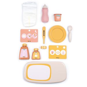 - Zawartość: ponad 10 akcesoriów do opieki nad lalką (m.in. termometr, butelka, smoczek, łyżeczka, krem, otoskop, termofor, notes, opaska)
