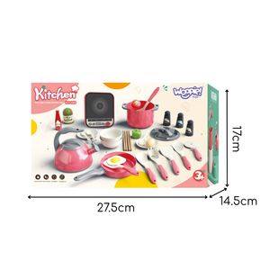 WOOPIE Zestaw Małego Kucharza Indukcja Garnki Patelnia Czajnik Różowy 30el.